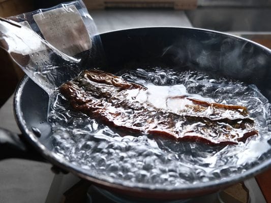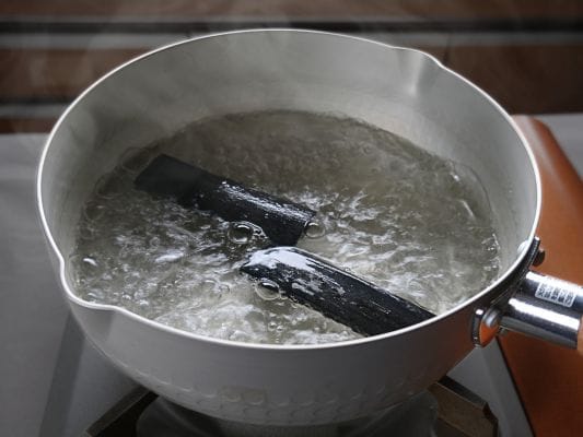 雑菌をしっかり除去して安心して使えるように、竹炭を熱湯に入れて5~10分ほど煮沸します。
