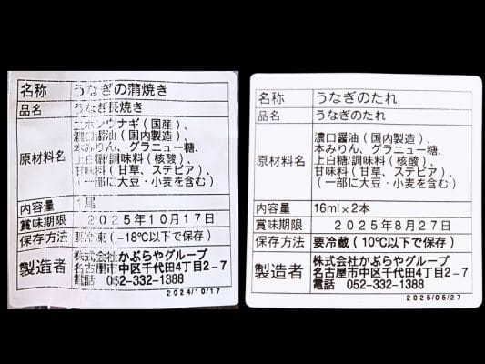 うな富士の「うなぎの蒲焼き」と「たれ」の賞味期限や原材料名・栄養成分表示は?