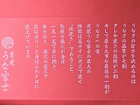 箱のフタ裏にはうな富士のこだわりが記されております⇩