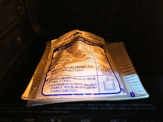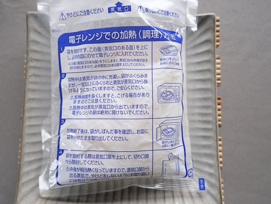 袋を開封せずに、蒸気口を上にしてお皿にのせて電子レンジへ。