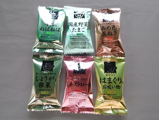 6種のバラエティ豊かな味噌汁&お吸い物が入っています⇩